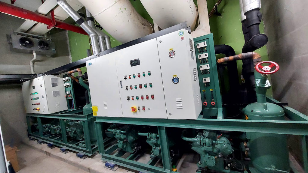 - 2 rack máy nén Bitzer tổng công suất gần 300HP.
